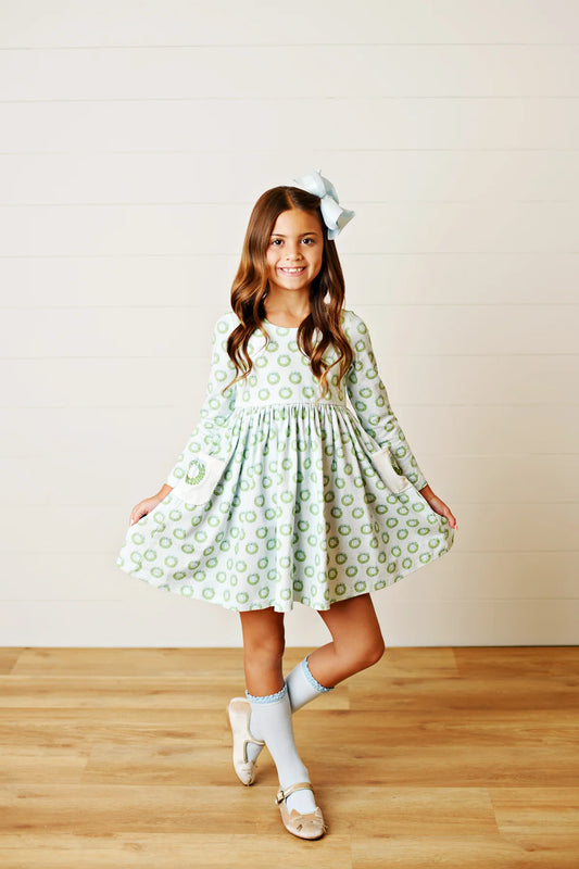 Wreath Embroidery Pocket Dress