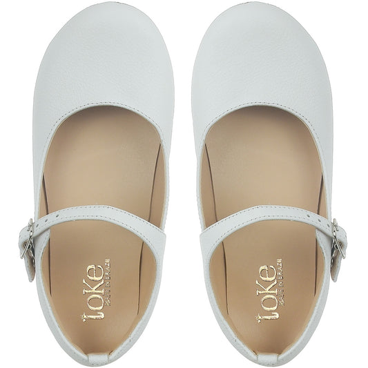 Youth Girl Leather Mary Jane - White w/Rubber Sole