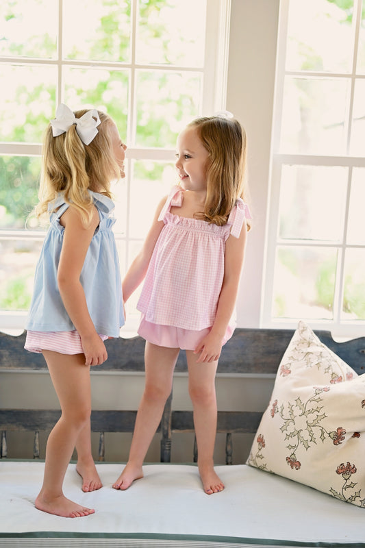 Kinley Ruffled Knit Pima Shorts - Pink Gingham