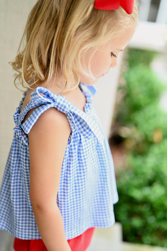 Kinley Ruffled Knit Pima Shorts - Blue Gingham