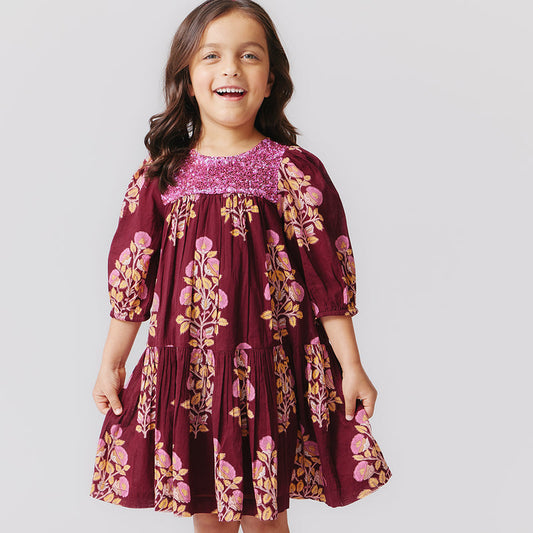 Girls Fiona Dress - Burgundy Bouquet Floral