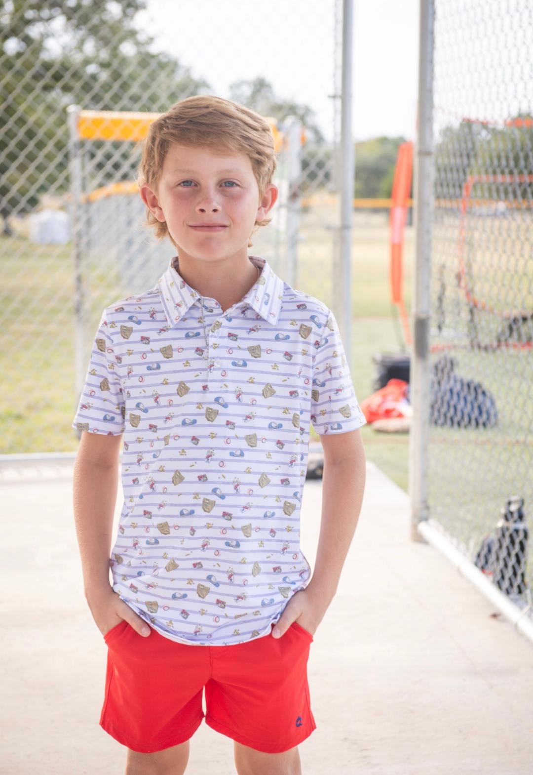 The 7th Inning Stretch Polo combines athletic style with practical sun protection. Crafted from UPF 50+ fabric, it shields your child's skin from harmful UV rays while delivering a soft, comfortable feel against the skin. Mesh ventilation and lightweight construction ensure breathability during active play, making it an ideal choice for warm weather activities. Whether at the ballpark or the playground, this polo keeps kids cool, protected, and looking sharp.