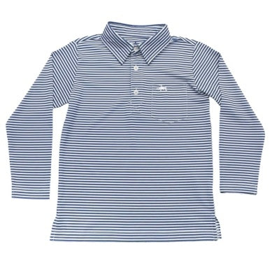 Inshore Performance Navy Stripe Polo LS