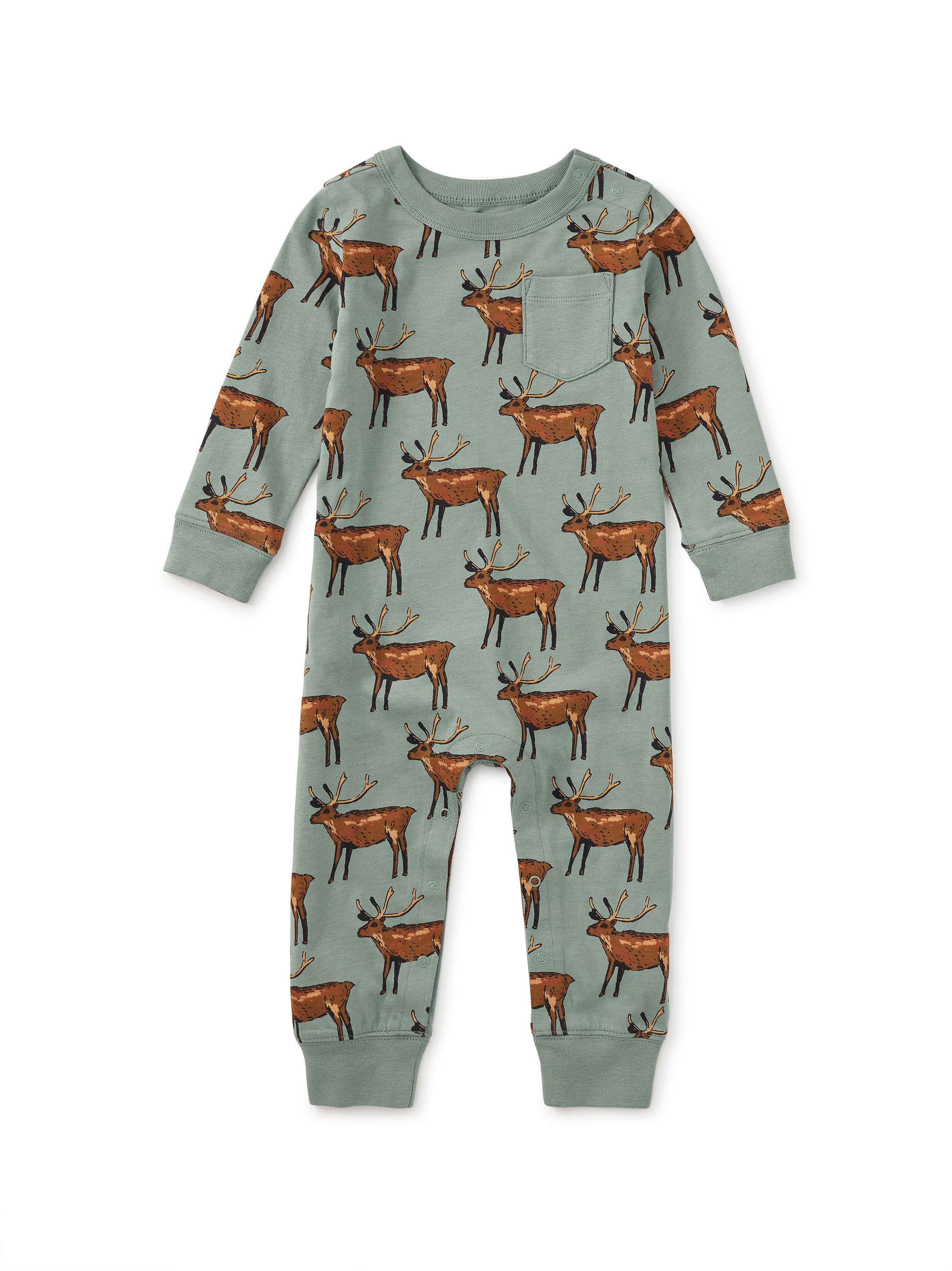 Long Sleeve Pocket Baby Romper - Painted Deer