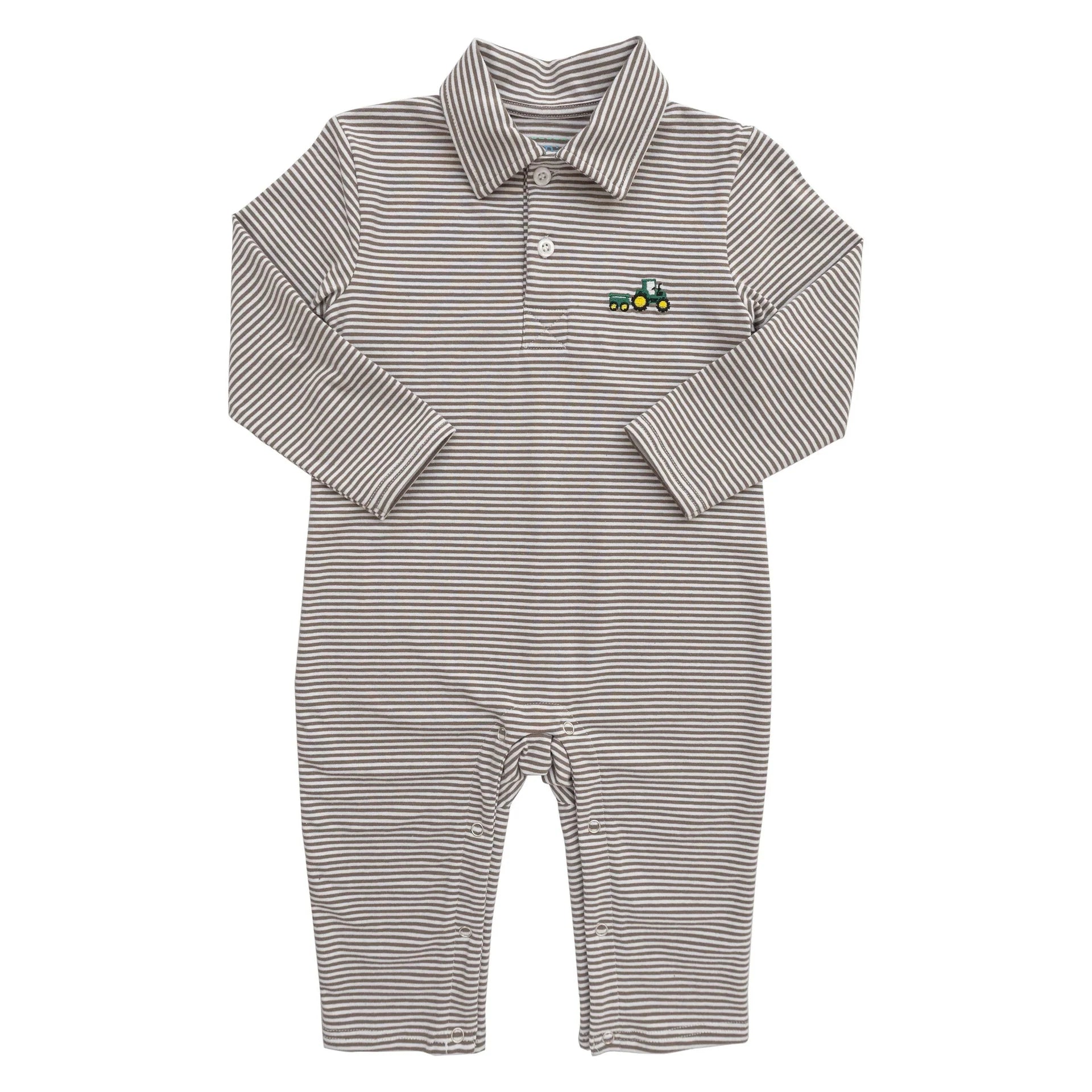 The Polo Romper - Tractor combines comfort and playful style for active little ones. Crafted from soft, breathable fabric, it ensures all-day comfort during play or exploration. The charming tractor design adds a fun, distinctive look, while the easy-to-wear cut supports freedom of movement. Perfect for playdates, park outings, or casual everyday wear, this romper offers both practicality and adorable appeal.